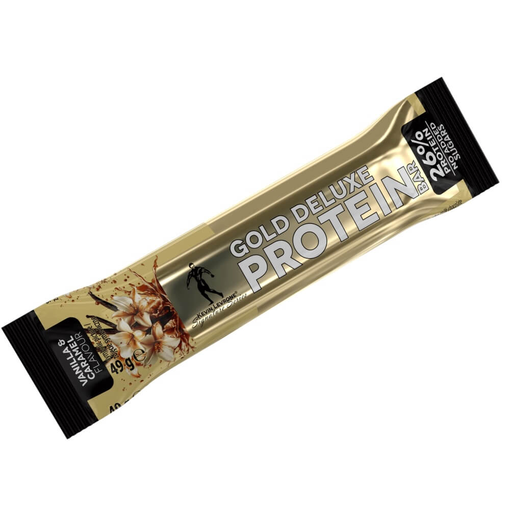 Kevin Levrone Gold DeLuxe Protein Bar – vanilli ja karamelli maitseelamus ilma lisatud suhkruta. Batoon sisaldab 26% kvaliteetset valku, toetades lihaskasvu ja taastumist. Magustatud maltitooliga, kaetud rikkaliku suhkruta piimashokolaadiga. Ideaalne treeningujärgne või tööpäeva vahepala, mis pakub magusat naudingut ilma liigsete kaloriteta. Netokogus: 49 g.